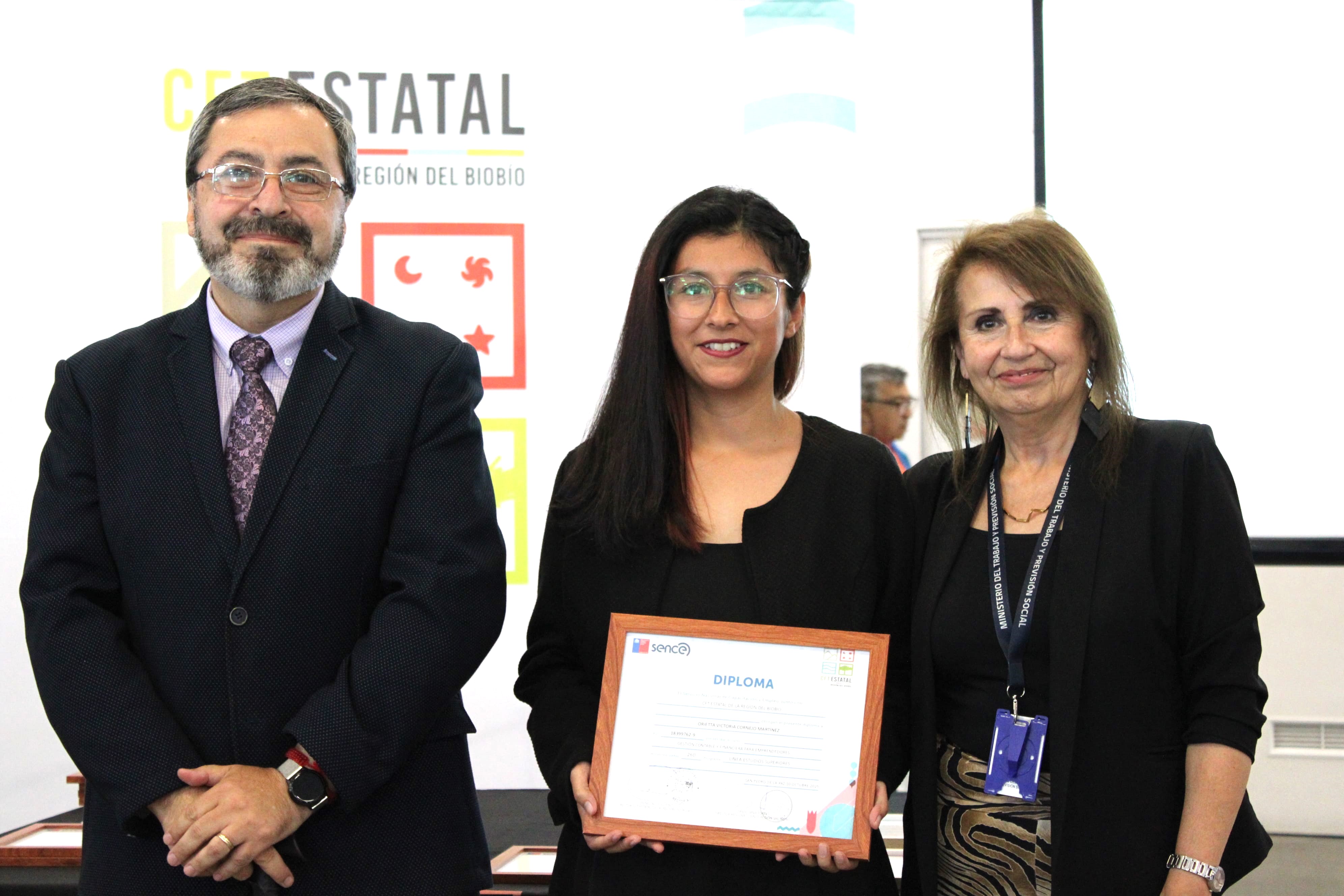 Un momento significativo de la jornada fue la distinción a la mejor compañera, recibida por Rosa Ortiz, joven madre de 2 hijos, quién tiene una pastelería con delivery en San Pedro de la paz. Al recibir el diploma del SENCE y el reconocimiento de sus pares, Rosa comentó: “Siento que más que cumplir las expectativas de enseñanza, también hay cosas que son importantes a nivel humano, y creo que eso cae más fuerte en el corazón que otras cosas. Tengo expectativas muy altas para el futuro, pues ahora sé gestionar y conozco elementos financieros que me harán crecer”.